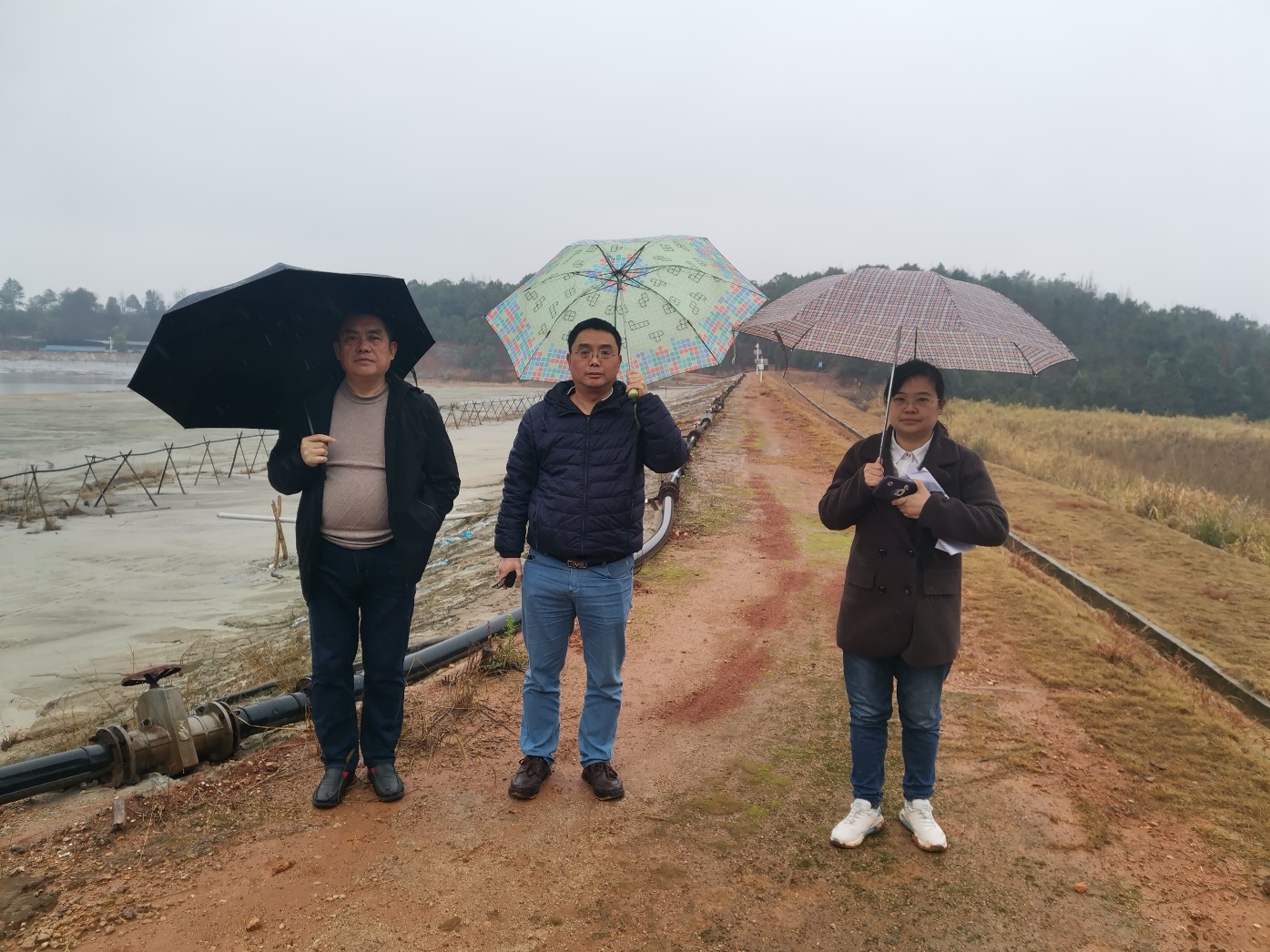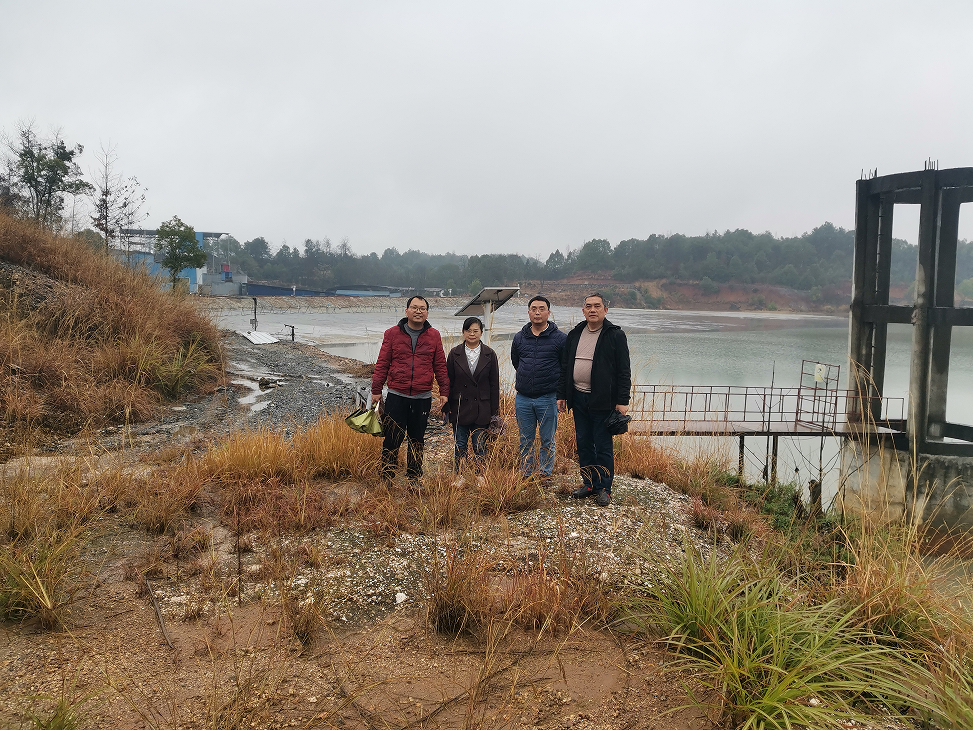 照片2 企业管理人员与项目内审人、项目负责人与在堆积子坝上合影